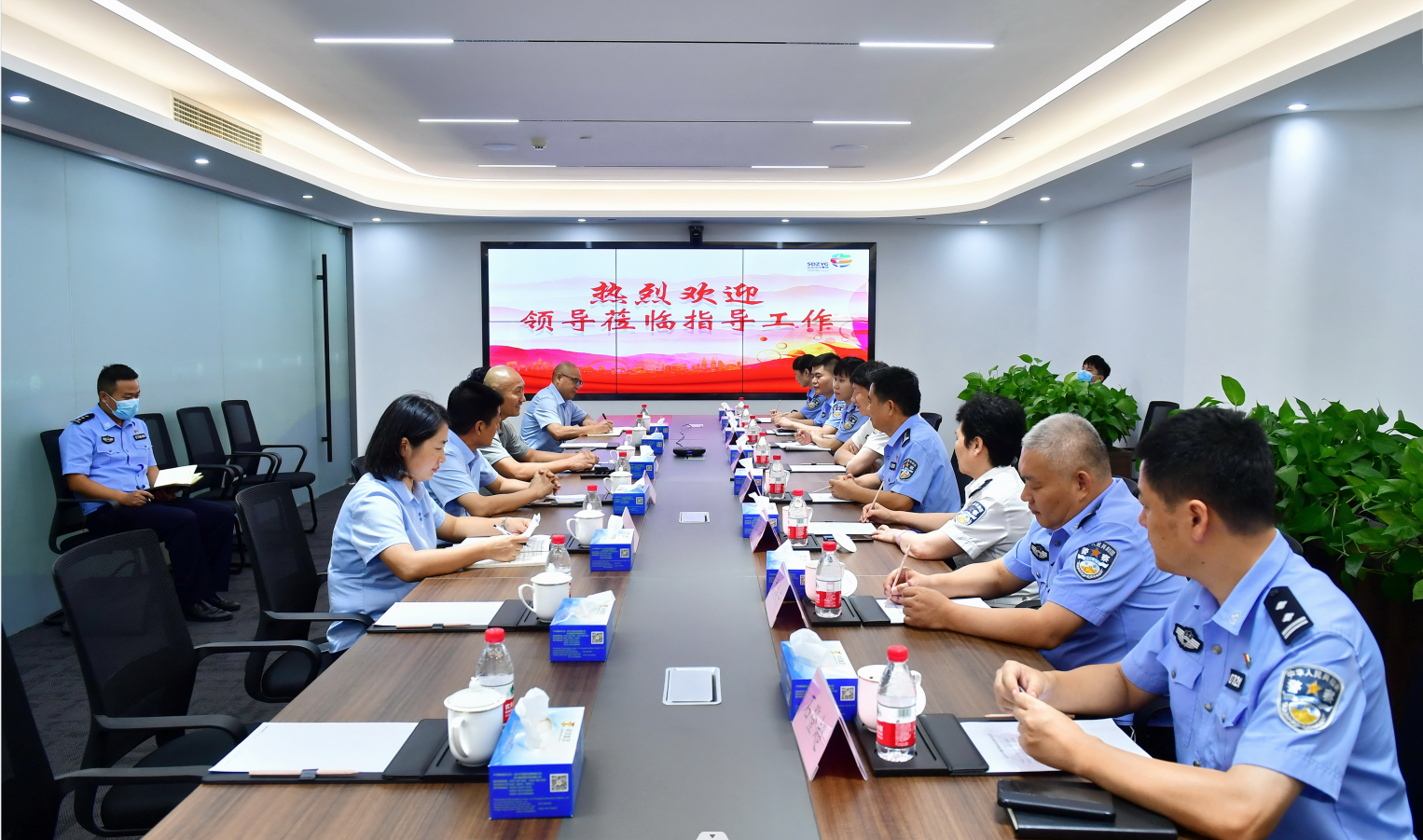 8月18日下午,山东省公安厅国合处处长侯献合一行到山东中洋集团调研,省公安厅国合处副处长胡文艳、聊城市公安局指挥中心国合处副处长左嘉等领导参加调研,市公安局党委委员孟凡旺、市公安局指挥中心政委陈华、兰山公安分局党委委员、纪委书记尤振东、兰山公安分局指挥中心机要秘书秘书科科长缪林、兰山公安分局北京路派出所所长石登超陪同,集团董事长杨继江、总经理郝爱军参加调研活动。